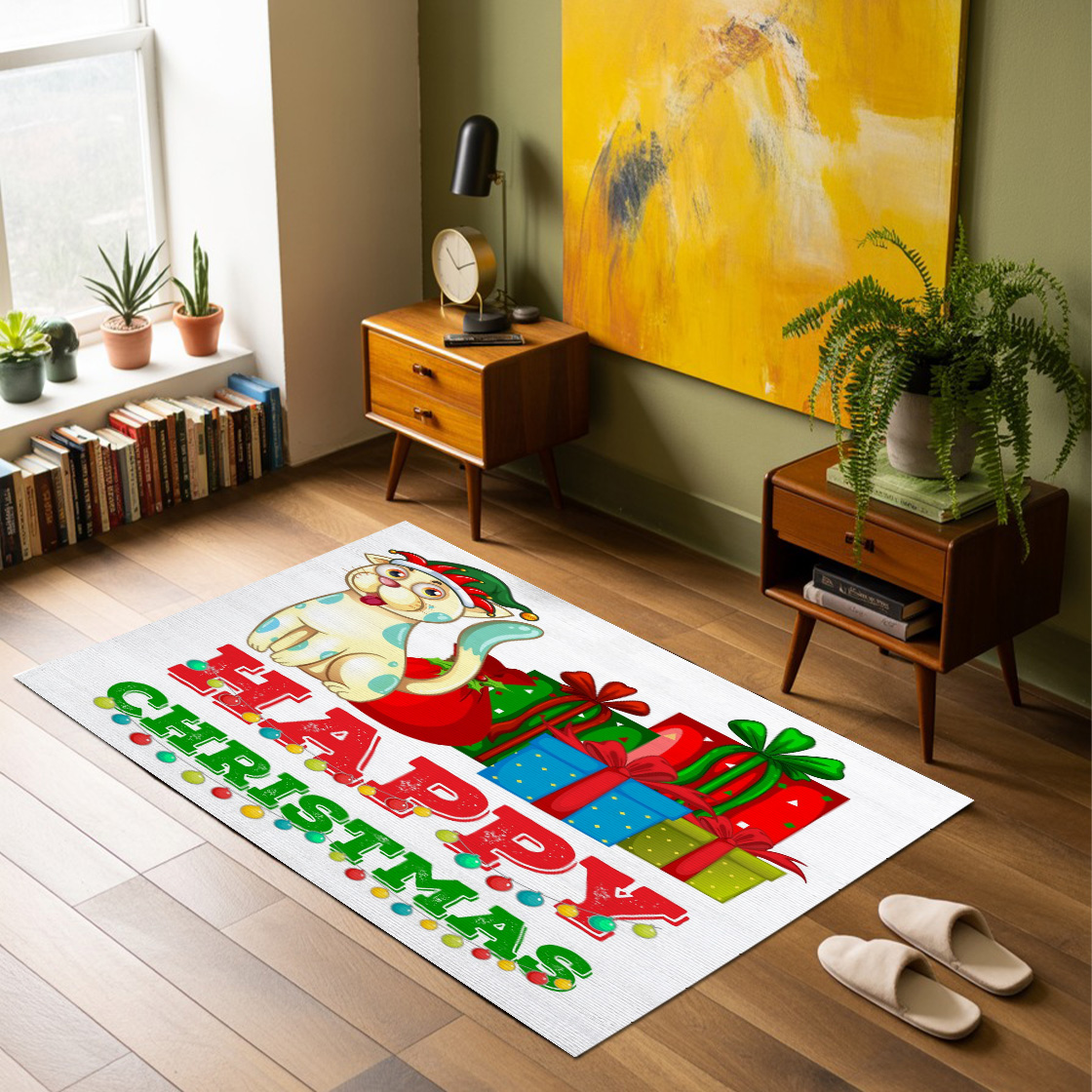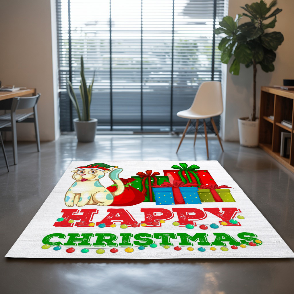 Christmas Theme With Cat And Christmas Presents Rug