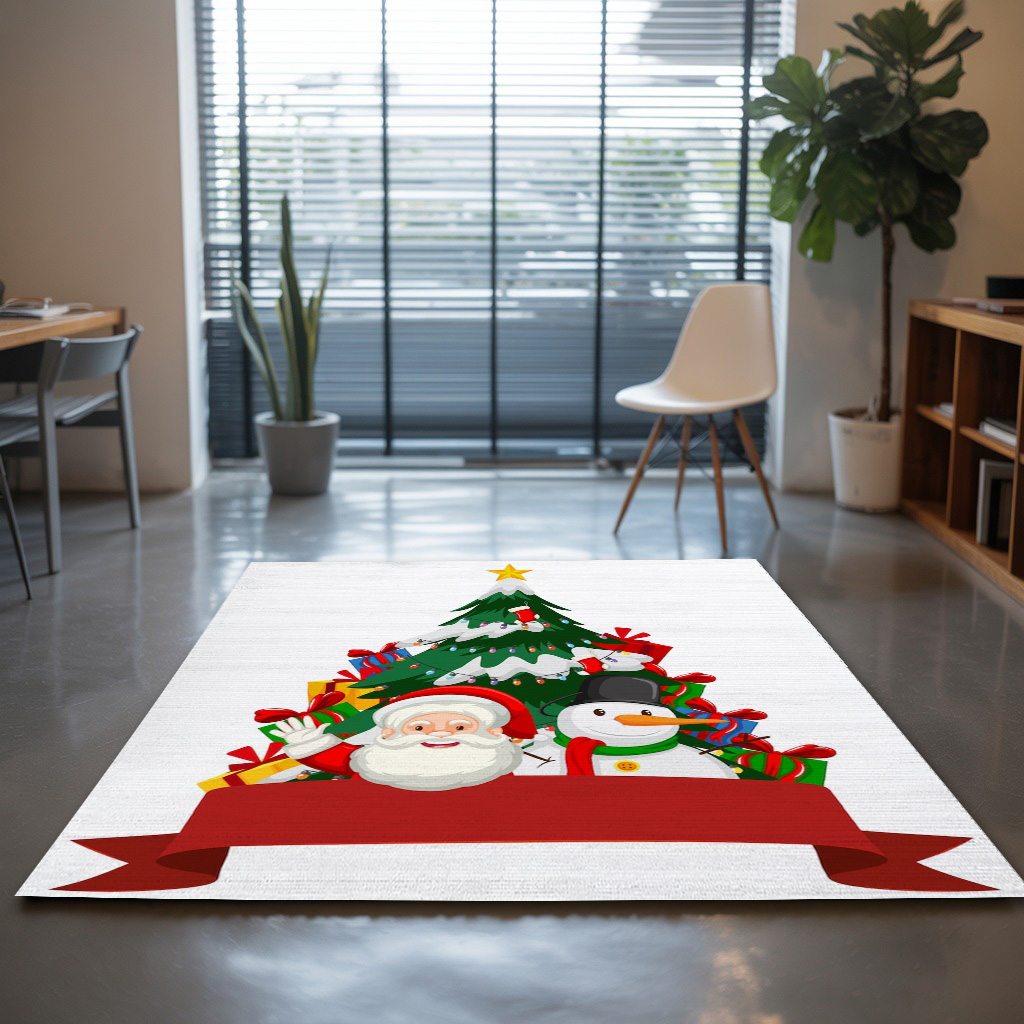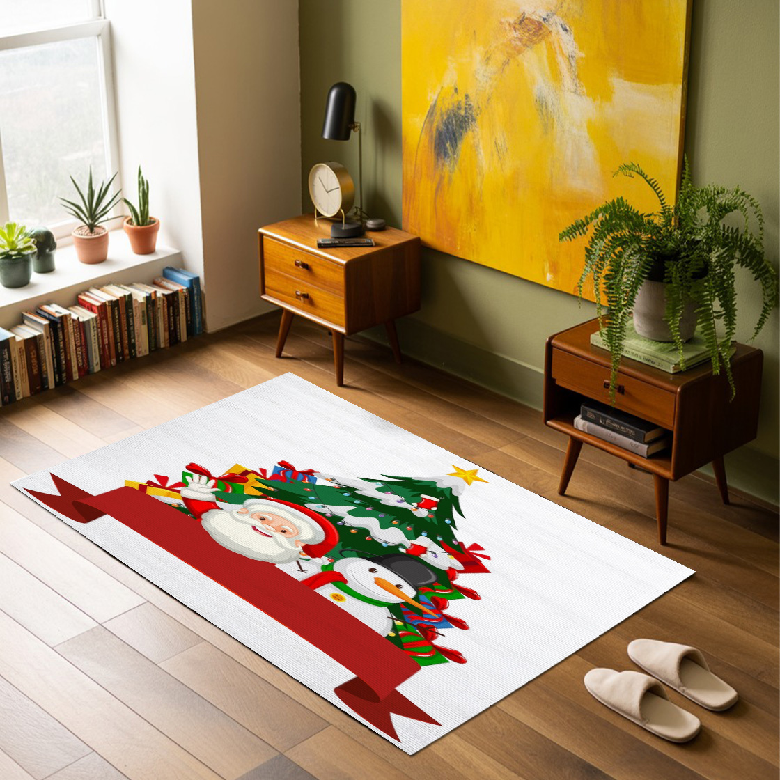 Christmas Theme With Santa And Snowman Rug