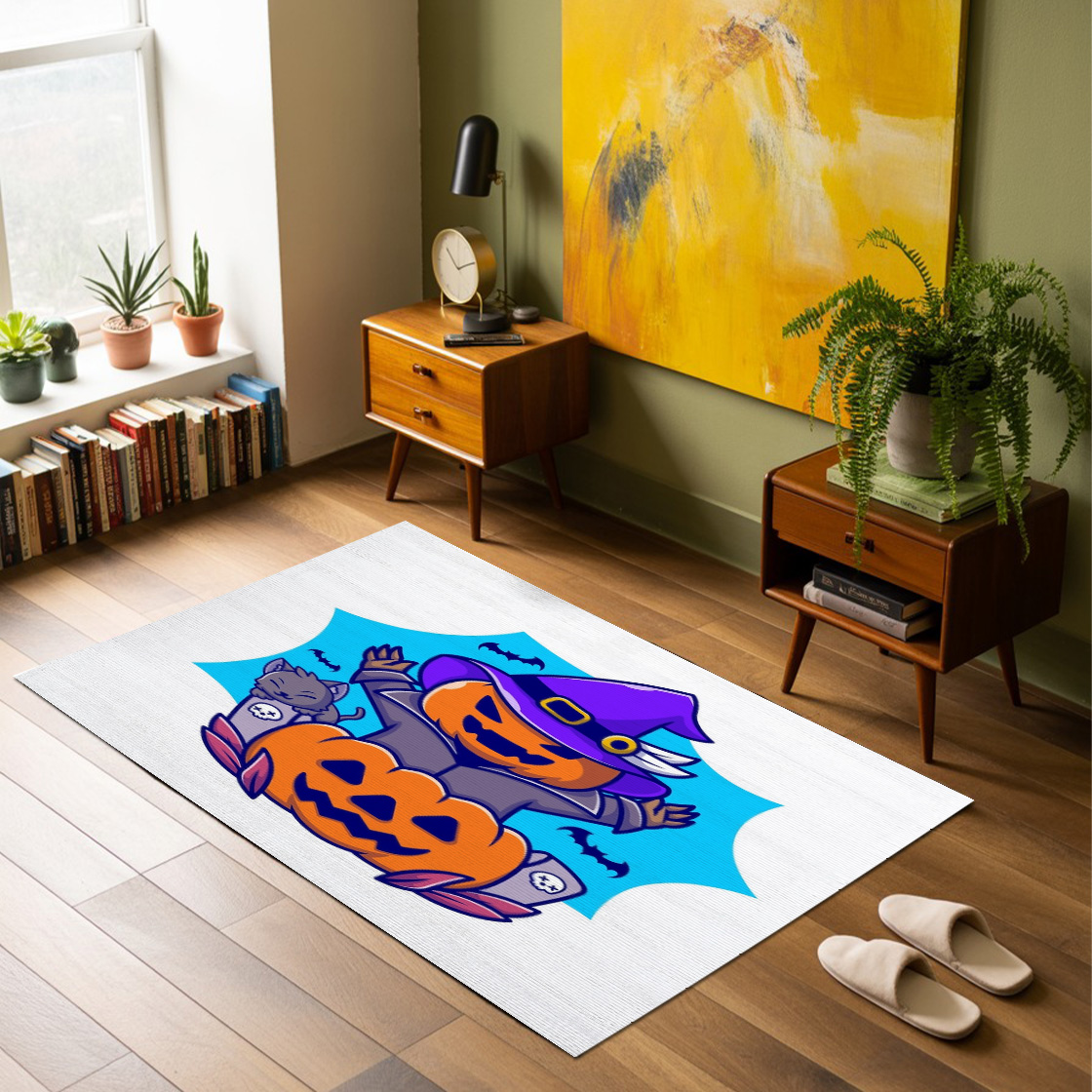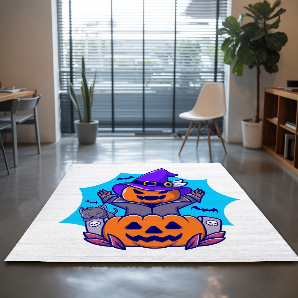 Be the first to review “Cute Witch Pumpkin With Cat And Bat Cartoon Rug”