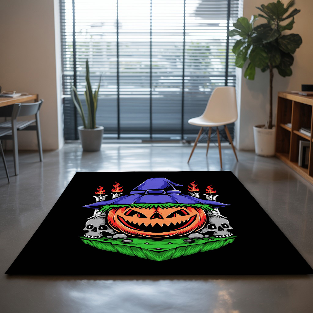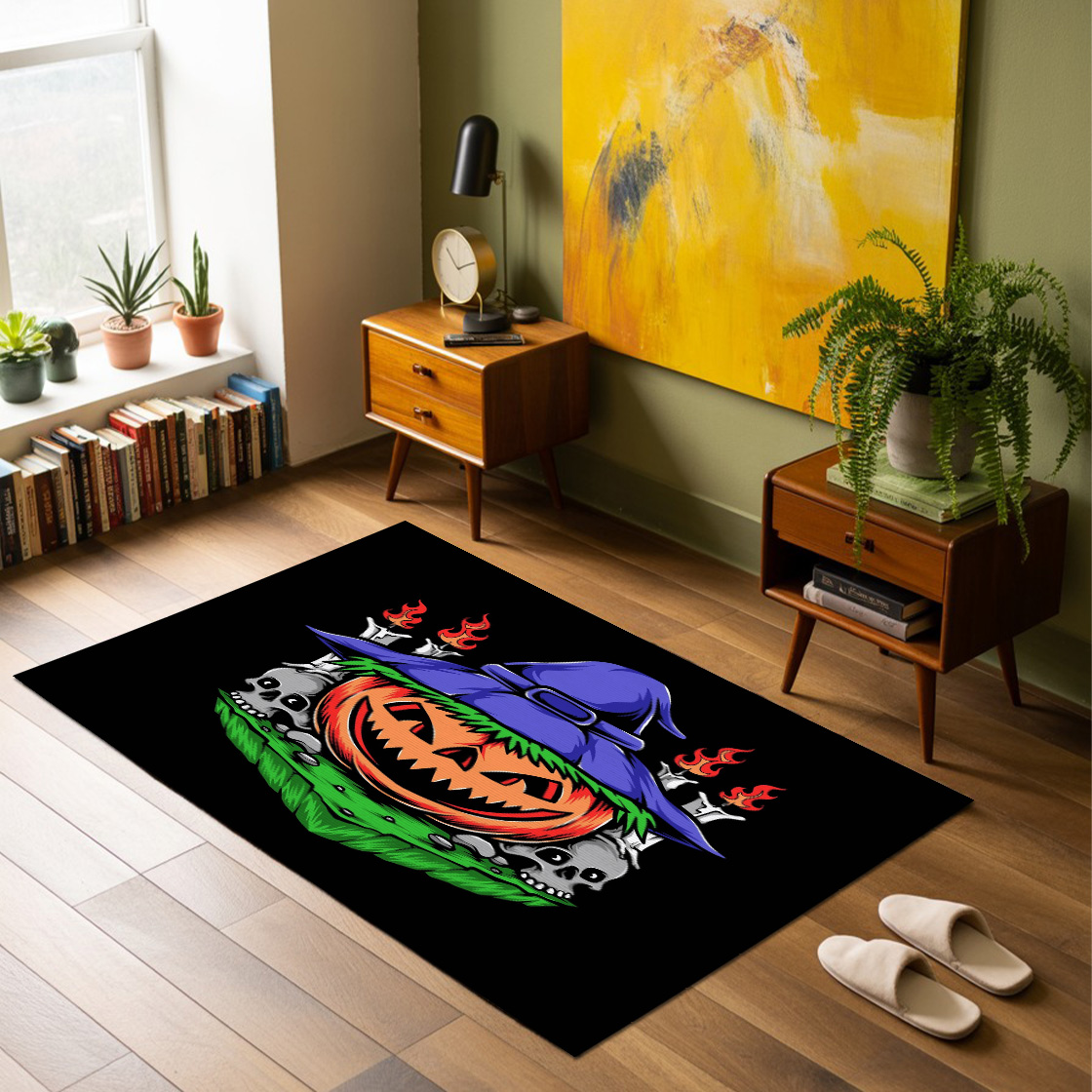 Scary Pumpkins Halloween With Witch Hat Rug