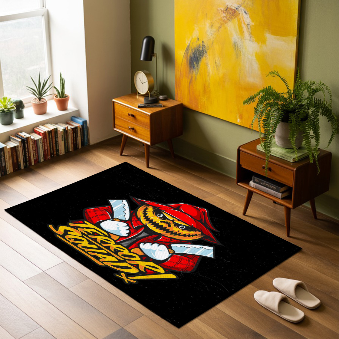 Scary Scarecrow Holding Knife Character Rug